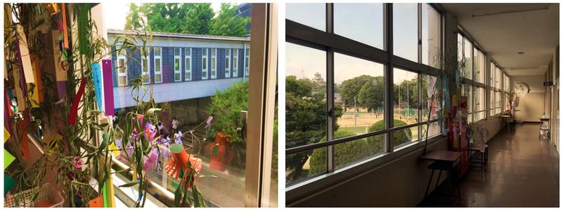 この時期、教室前の廊下には七夕飾りが並んでいます。