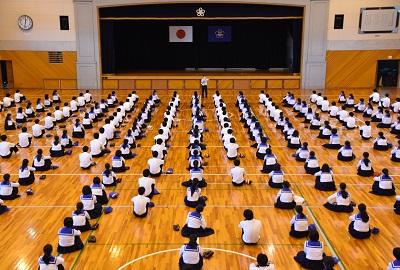 今年度当初の新型コロナウィルス感染拡大による休校や、生徒のこれまでの成果を発揮する場である各種大会の相次ぐ中止、3密を避けてソーシャルディスタンスを取っての学校生活等、短いようで長かったと感じる1学期が終わります。例年と違う、放送による終業式が行われました。深水校長からニュートンの例をもとに本当の勉強と何か、また人吉・球磨地域の豪雨災害におけるボランティアの参加等をもとにしたこれまでの振り返り、今後の生活に対する心構えなどの講話がありました。引き続いて、井上進路指導主事、増田生徒指導部長からの諸連絡がありました。生徒は各教室でそれらを聴き、これまでとは大きく変わった学校生活や短い夏休みに思いを馳せていました。2学期の始業式は8月17日(月)です。