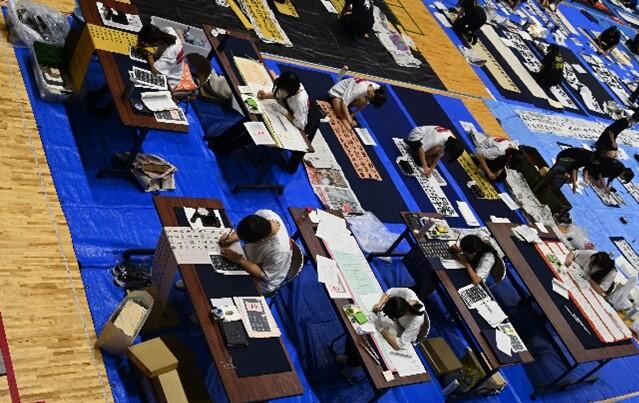 【書道部】令和7年度 第31回熊本県高等学校揮毫大会に参加しました。 投稿日時 : 09/24 学校サイト管理者 9月13日(土)、宇土市市民体育館で、令和7年度第31回熊本県高等学校揮毫大会が開催され、書道部が参加しました。 制限時間2時間の中で頑張って、書いています。 審査の様子をドキドキしながら見守っています。 2年生の二人が来年度、鹿児島県で開催される九州大会に出場することが決まりました。1年生も多数入賞しました。団体では3位でした。