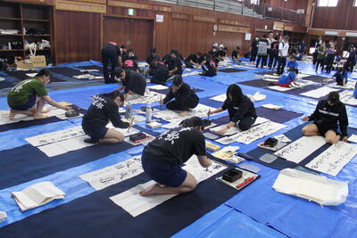 岐阜県下呂市を会場として行われました「全国高校総文祭書道部門(8/1~3)」に参加してきました。全国から選ばれた300の作品とそれを書いた生徒が集まり、お互いの書の批評会やグループ毎に分かれての作品制作を行いました。全国の優秀な生徒の作品に触れたり、共に作品を制作したりして、全国のレベルを肌で感じることができました。