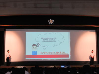 今回は、「教育関係」と「医療関係」の2部門でインターンシップを通して学んだことなどを代表生徒が発表しました。
