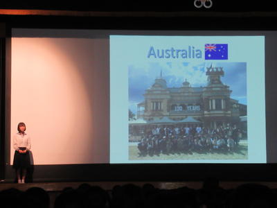 成果発表会では、日本とオーストラリアの生活や文化の違い、現地の人たちとの交流を通して学んだことなどを