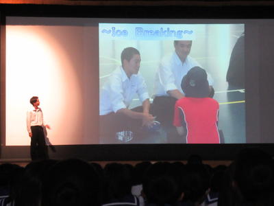 参加生徒の代表者9名がスライドを使用しながら英語でスピーチしました。