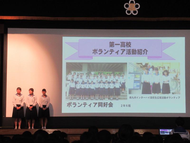 【成果発表会】ボランティア活動について 投稿日時 : 2019/10/26 学校サイト管理者 本校では多くの生徒が年間を通じて様々なボランティア活動に参加しています。 今回は、ボランティア同好会の生徒代表3名が4月からの活動報告と、今後の活動計画について発表しました。