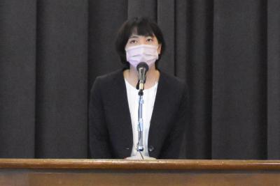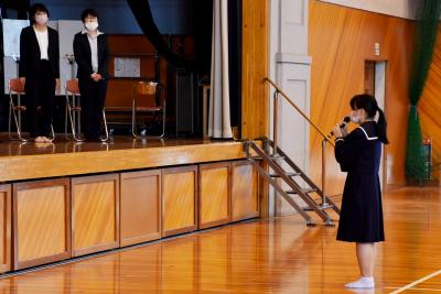 一年間歌うことができなかった、本校自慢の校歌の合唱で先生方をお送りしました。