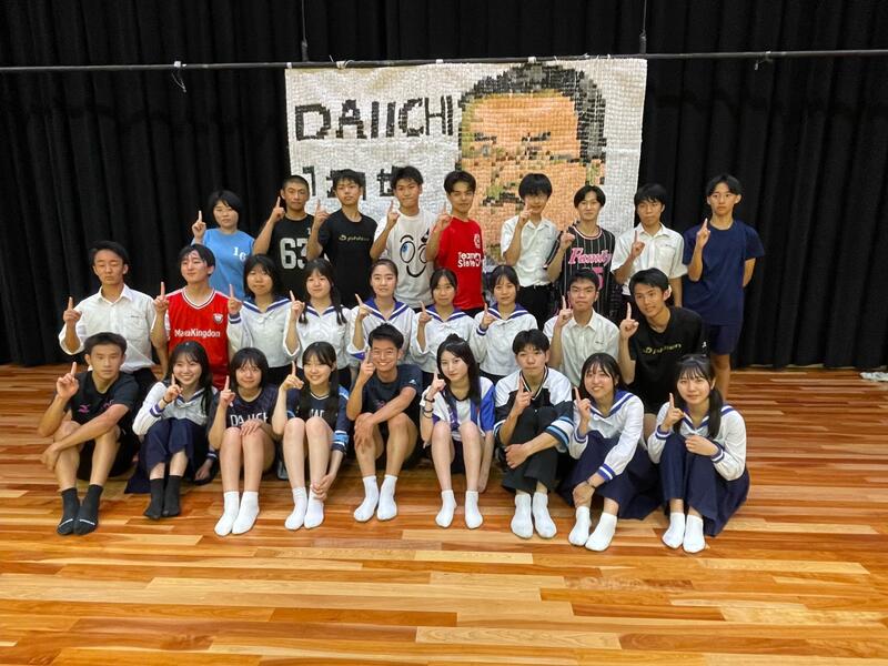 完成した折り鶴アート(全校制作)『郷土の偉人「北里柴三郎」博士』を生徒会総務委員長(生徒会長)が全校生徒に披露する際には、北里柴三郎博士のひ孫さんで同記念館館長を務められている北里英郎様がご夫婦で駆けつけてくださり、一高祭文化部門に華を添えてくださいました。