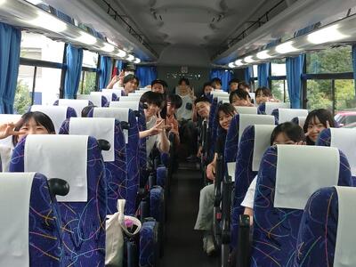職員や保護者の皆様からのお見送りを受け、バスで福岡空港へ。