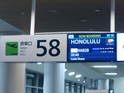 午後8時40分、飛行機はハワイ、ホノルルに向け離陸しました。