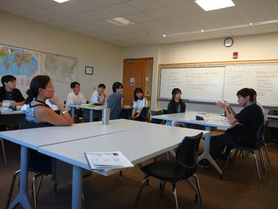 3,4人で1グループとなり一人ずつ順番に意見を言う生徒たちに、Kumu先生(Cross-Culture Discussionの先生)は、それは自然な会話ではないので相手の話の中に入っていきなさい、 jumping しなさい、と何度もおっしゃいました。