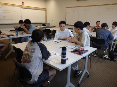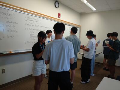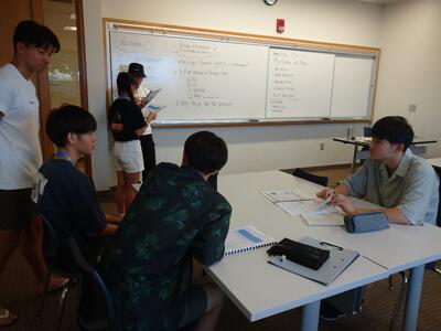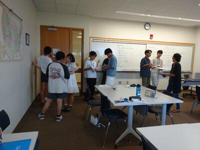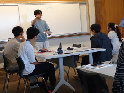 グループディスカッションをしましたが、最初に比べるとみんなゼスチャーをしながら英語でスムーズなディスカッションができるようになりました。