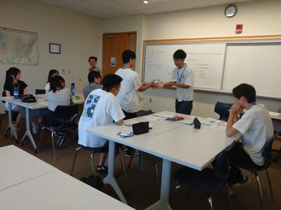 例えば、二人一組となりお互いyes noで答えられる質問をし、最後にじゃんけんをして負けたら席に戻り、勝った人は新たな相手を見つけて、また質問、じゃんけんとこれを繰り返します。最後まで勝った人は、みんなから称賛の拍手をもらっていました。