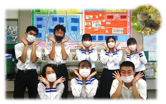 【生物部】活動報告② 投稿日時 : 2021/06/01 職員 6月となり、3年生(3名)の活動も節目を迎えました。 本日、ささやかな慰労会を行いました。3年生のみなさん大変おつかれさまでした。先輩方の研究を、着実につないでいきます!!! 写真のポーズは、生物部で飼育しているウーパールーパーのポーズです♪