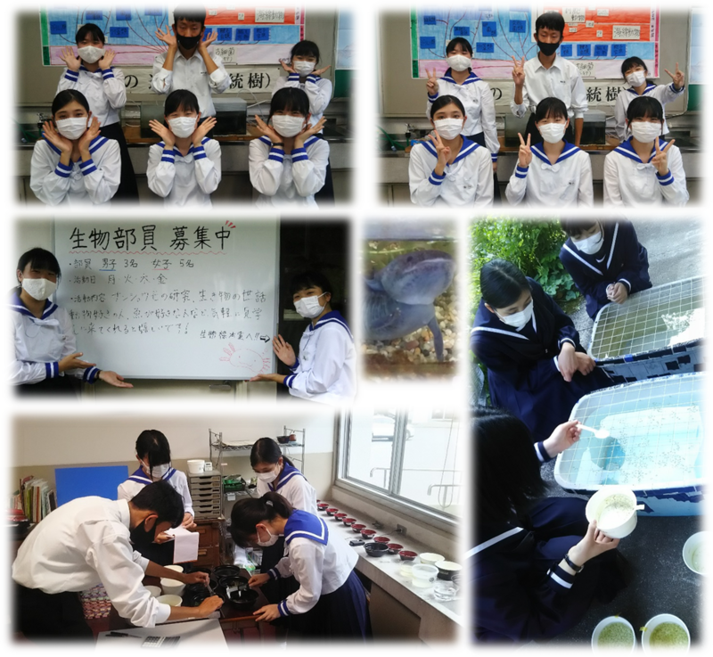 【生物部】活動報告 投稿日時 : 2022/05/20 学校サイト管理者 1年生が2名入部し、2年生6名に加えて総勢8名となり、にぎやかな生物部です。 サンショウモの研究、生き物の世話を中心に、さらなる研究テーマを模索中です!! 飼育しているウーパールーパーも大きくなりました!!