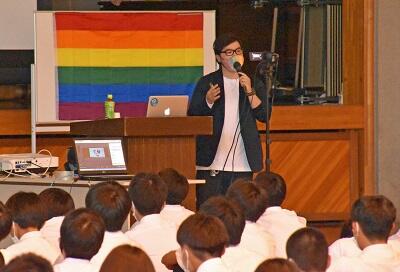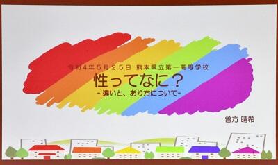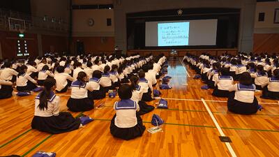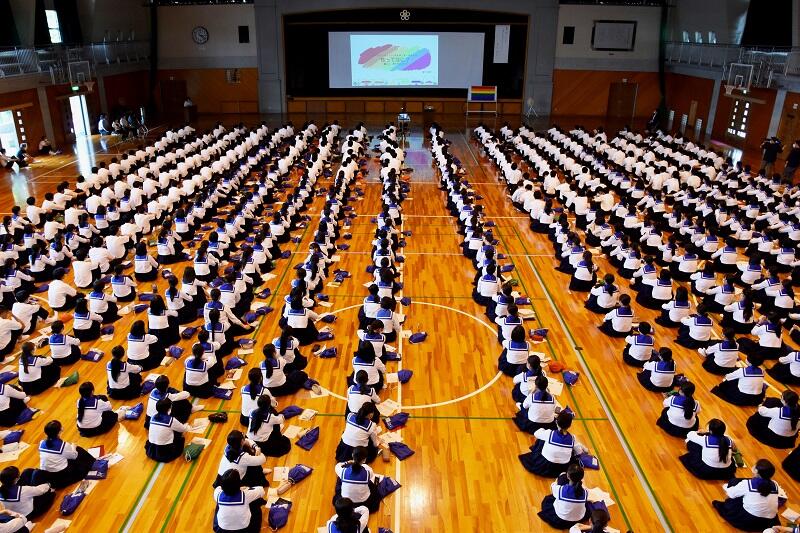 今日7限目、2・3年生は本校体育館にて、1年生は各教室に中継しての実施となりました。本講演は曽方晴希さんを講師としてお招きし、「性ってなに?違いと、あり方について」というテーマで、御自身の生い立ち、これまでの葛藤など、当事者の視点からのお話を伺うことができました。生徒代表謝辞では、「自分の思い込みや決めつけが人を傷つけてしまう事があると思った。まずは色々なことを知り、多様な考え方を受け入れていく姿勢でいたい」との言葉があり、生徒・職員が性の多様性について理解を深めるという目的を果たす事ができる時間となりました。