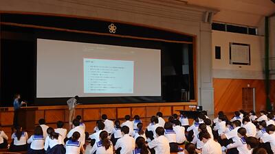 2年生は探究の時間で論文制作に取り組みます。「自分が得意なことで社会に貢献できる」考え方のヒントとして、Bridge KUMAMOTOから佐藤さんと坂本さんのお二人に講演を聴きました。“問いを重ねること、問いを見つけること、答えを見つけるではない“がこれからの社会貢献に求められることだそうです。Their messages are motivating and inspiring them to achieve their dreams!