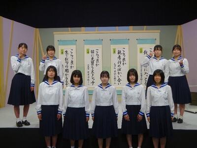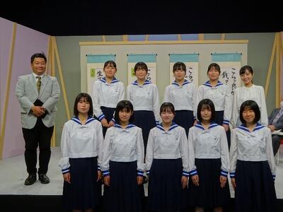 肥後狂句の入選・入賞句を本校書道部の生徒が揮毫し、5月4日の公開収録に参加しました。収録後、入選された方が書に感激し、揮毫した生徒と記念撮影をする場面もありました。
