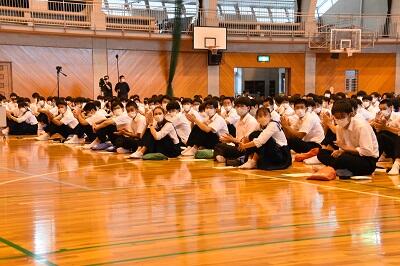 皆さんはこの第一高校で、『凛として凛々しく文武一道を目指す』を合言葉に日々の部活動に取り組んできました。ここに到達するまでにはたくさんの辛いこと、楽しかったことがあったと思います。最後の大会に臨むに当たり、それぞれ強い思いと決意があることでしょう。その思いを十二分に発揮する大会にしてもらいたいと願っています。