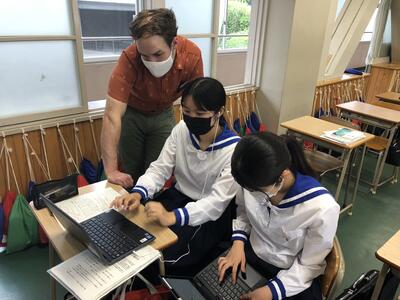 オーストラリアのForest Lake State High Schoolで日本語を学ぶ生徒達と2年生英語コースの生徒が、zoomで初の交流を行いました。第1回の今日は自己紹介と”our spare time activities”について二人に1台の端末を使って話しました。