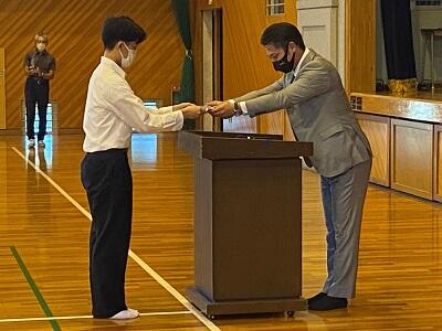 令和4年10月12日(水)7限目、共通テスト100日前となった3年生が先生方の講話を聴き、進路実現に向け受験勉強に取り組む意欲をさらに高めました。好文会からは合格応援鉛筆の贈呈もあり、自分たちを最も身近で応援し続けてもらっているという感謝の気持ちを、生徒代表の山下さんが述べました。頑張れ3年生!!