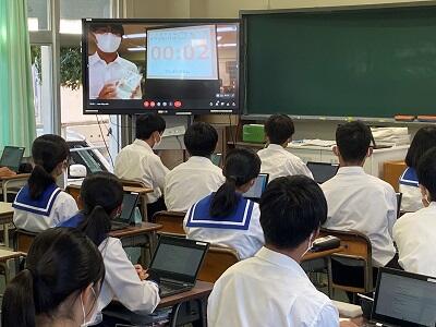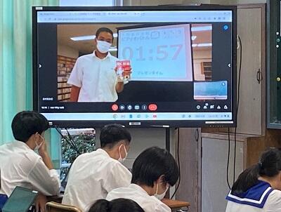 1年生の 総合的な探究の時間で取り組んでいる、新書ビブリオバトルの学年発表が行われました。今年はオンラインでの開催となり、クラス代表がプレゼンテーションする様子を教室の電子黒板で見た後、どの本を読んでみようと思ったか投票しました。1位は1年6組代表の「Think Better」となりました。読書の秋です。いろいろな本を手に取ってみましょう!