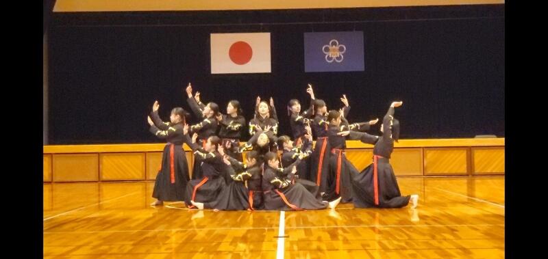大会前日には、体育館に集まってくれた多くの生徒の前で発表し、大きな拍手をもらうことができました。集まってくれた生徒達の期待を胸に出場しましたが、あと一歩のところで入賞は逃してしまいました。しかし、県立劇場のステージで堂々と踊ることができ、貴重な経験をした一日となりました。