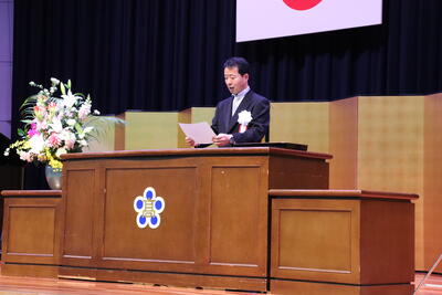 今年度初めて上級生と新入生が対面する式において、校長先生と生徒会総務委員長(生徒会長)から歓迎の言葉が贈られ、その後、文化部並びに運動部の代表者から部活動の意義や魅力、活動報告等が紹介されました。