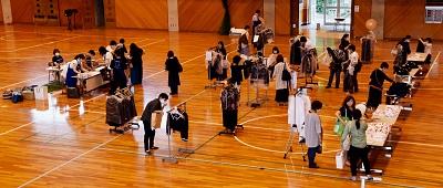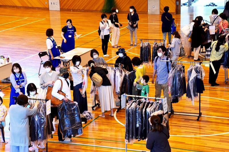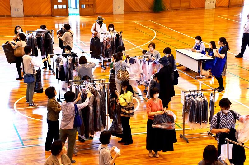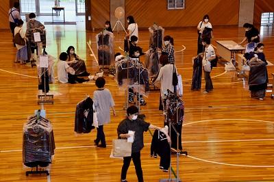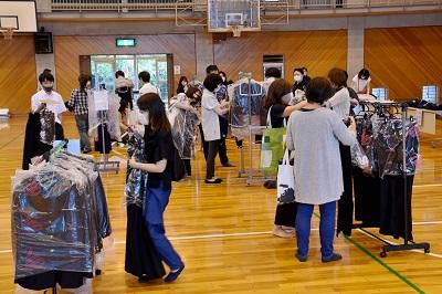 卒業生等から寄贈された使用可能な制服や防寒コート、体育服等をクリーニングして在校生に還元する、制服リサイクルバザーが開催されました。大勢の保護者に来校していただきました。