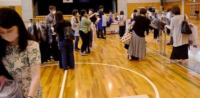 7月3日(土)1・2年生は総合学力テスト、3年生は模擬試験が実施されました。体育館では好文会主催の、制服リサイクルバザーが開催されました。当初は5月中旬に開催予定でしたが、コロナウィルス感染拡大で熊本県にもまん延防止等重点措置が適用され、開催延期となっていました。多くの保護者に加えて、テストの休み時間には生徒も購入に訪れました。