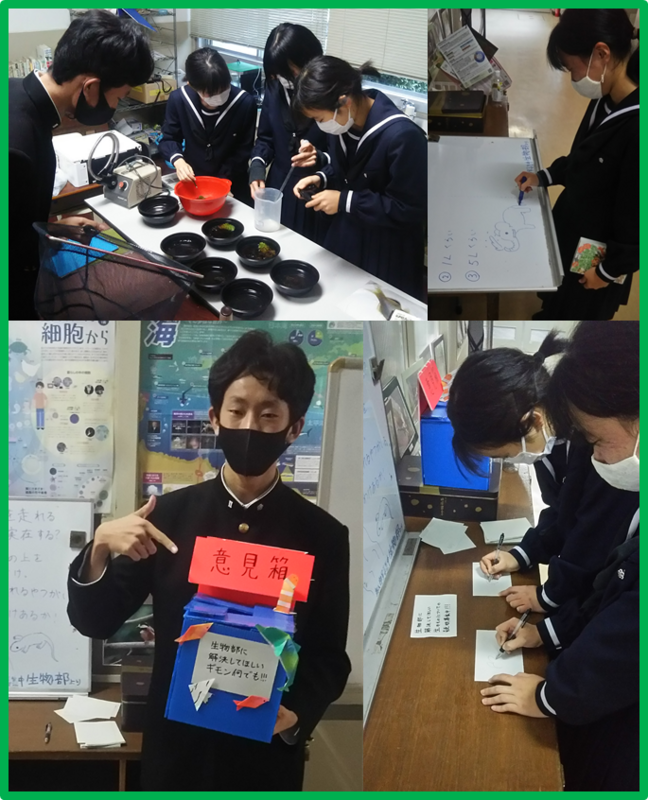 これを機に、みなさんもぜひ生き物に興味を持ってください!!また、生物部で一緒に活動してくれる方の入部も募集中です!!よろしくお願いします。