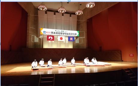 令和3年12月15日(水)に熊本県立劇場コンサートホールで来年度の全国総文祭の県代表選考会が行われました。日本音楽部門は8校が出場しました。本校邦楽部は『春の詩集』(牧野由多可 作曲)を1、2年生10名で演奏し、金賞をいただくことができました。また、来年6月2~4日開催の第34回熊本県高等学校総合文化祭の代表校に選出されました。今日の結果を励みに、県総文祭に向けて頑張っていきます。
