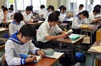 「朝読書の時間」 自分の好きな本を読みましょう。図書館の本を借りるのもOK。 10分間ではありますが、3年間の積み重ねで100冊読んだ!という生徒の声も。 本の種類にもよりますが、1年間で30冊に達するようです。 |