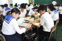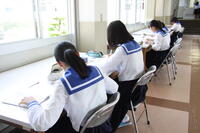1コマ50分の「午前の授業」です。 最近では大型提示装置、タブレットを使用した授業も増えてきました。 グループ学習や、ペアワークなど生徒の活発な意見交換も多く見られます。 分からないことは生徒同士で共有したり、教員も生徒の皆さんのサポートは惜しみません。 |