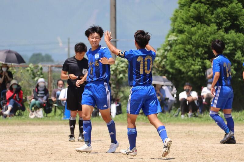 これは阿蘇中央高校との試合の写真です。この試合ではこれまでの練習や戦術が実を結び、素晴らしい攻撃をして相手ゴールを奪うことができました。