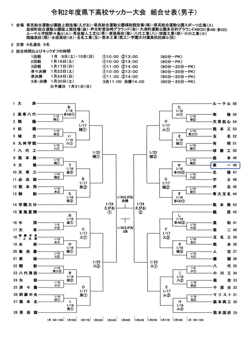 【 全国高校サッカー選手権 熊本県大会 1回戦 】