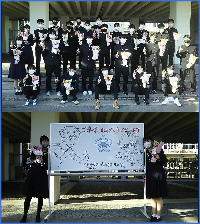 3年生の晴れやかな笑顔が大変印象的で、第一高校での充実した3年間を表していました。