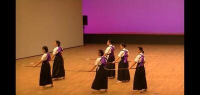 9月22日に行われた一高祭文化部門のステージ発表において、「リズムなぎなた」を披露しました。リズムなぎなたとは音楽に合わせてなぎなたの基本動作などを取り入れて演舞するものです。全員が初めてのリズムなぎなたをするため、本番はかなり緊張していましたが、観客席からの手拍子も力になり、迫力ある演舞ができました。次は新人戦に向けて頑張ります。
