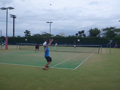 練習では、基本練習の反復をはじめ、団体戦を見据えたシングルスとダブルスの実践練習を繰り返しました。強化練習とはいえ短い時間での練習なので、部員一人一人が何か1つ基本を意識して練習することを心がけました。また、2日間、寝食を共にすることで、団体戦前に一層チーム力が増したと思います。