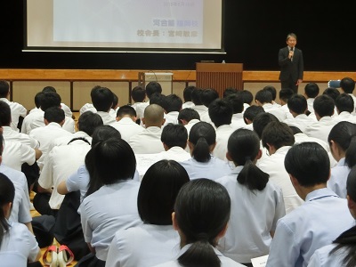 平成30年6月13日(水)7限目、河合塾福岡校 校舎長 宮崎敏彦様をお迎えして3年生対象の進路講演会を開催しました。「真の受験生になる」ためのヒントや心構えについて興味深いお話を聞くことができました。センター試験まであと約200日。3年生頑張ってください!