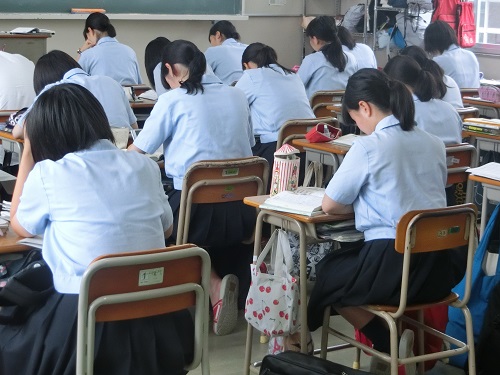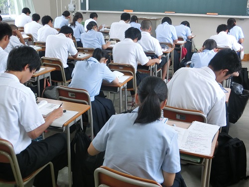 夏休みが始まりました。今年の夏は暑く、連日のように全国各地で“猛暑”に関する話題が報道されています。この猛暑の中、夏休みの課外が始まりました。3年生にとっては、「夢実現」に向け、時間をかけて学習に専念できる期間です。各教室では真剣な表情で取り組む生徒の姿が見られます。