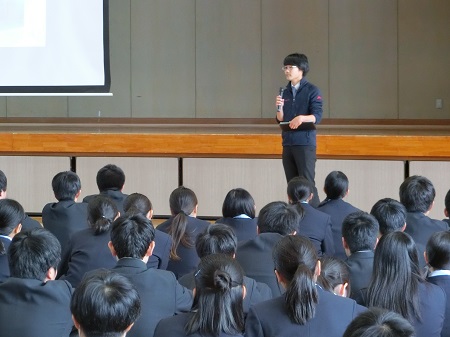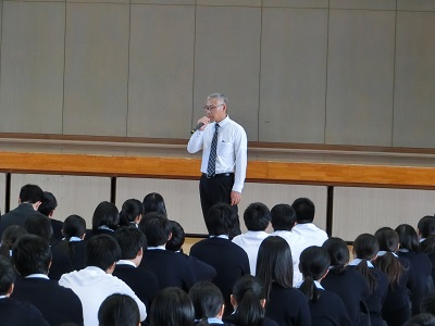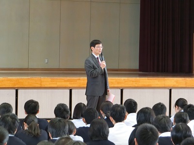 進路指導主事の髙濱先生からは、受験における注意事項、またトラブルが発生した時の対応などの確認が行われました。そして、二次対策後半の55期生の取組の様子には意識の高さが感じられたという感想があり、最後に前期試験での活躍を期待するという激励がありました。
