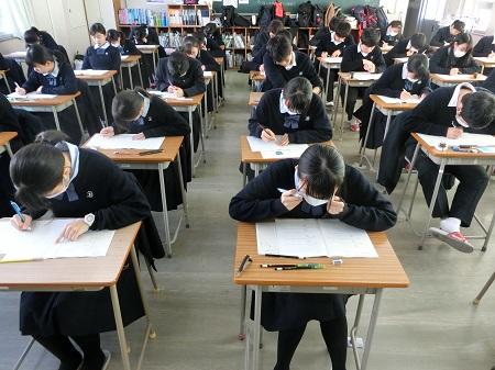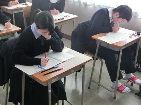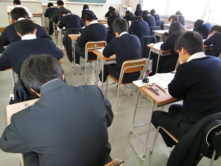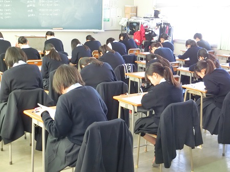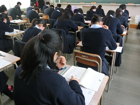 27日から30日までの4日間、3年生は学年末考査に取り組みました。考査中や考査後に国公立大学の推薦入試を受験する者も多く、この1週間は遅くまで教室で勉強する者、また推薦入試に向けて面接や小論文の指導を受ける者と様々でした。
