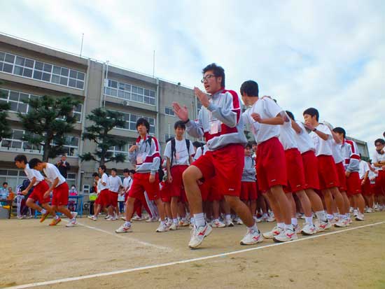グリーンランドおまつり広場に全校生徒が揃うと圧巻です。