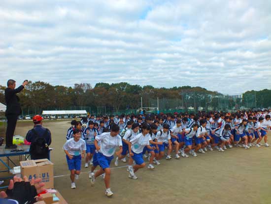 1年生学年競技、クラス対抗リレー。スタートは担任の先生です。