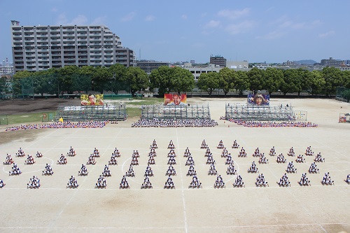 1年生による二高体操とマスゲーム。