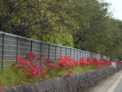 第二高校バス停の横にアセビの花が満開です。枝先に10cm程度の花序を垂らし、多くの白いつぼ状の花を咲かせています。一見地味ですが、一つ一つの花を観察すると10本のおしべなどを確認することができます。