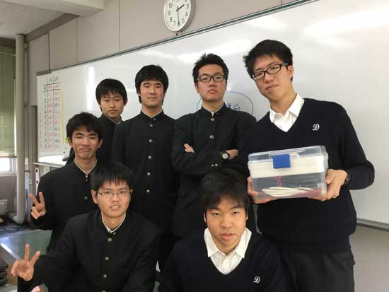 ▲東海大学電気電子情報工学科感性情報処理研究室の学生と