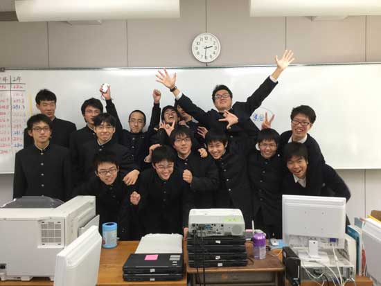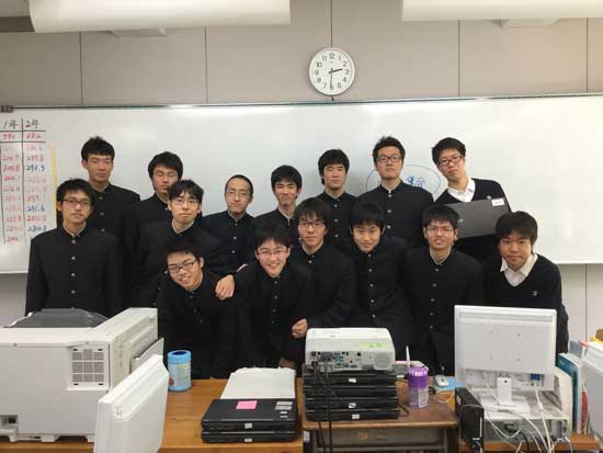 3月1日卒業式。クラスイベント後、コンピュータ同好会所属の卒業生と在校生がコンピュータ室に集いました。卒業生は、これまで1年生の面倒をよくみてくれていました。縦の絆は今後も継承していってほしいですね。