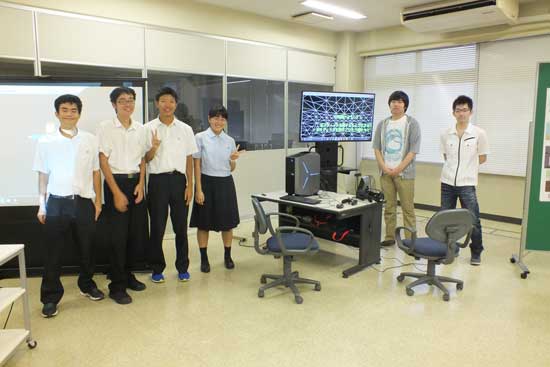 テーマは「VR(ヴァーチャル・リアリティ)」。東海大学電気電子情報工学科感性情報処理研究室の学生との共同研究で、本校生徒は3Dモデルの作成を担当しました。