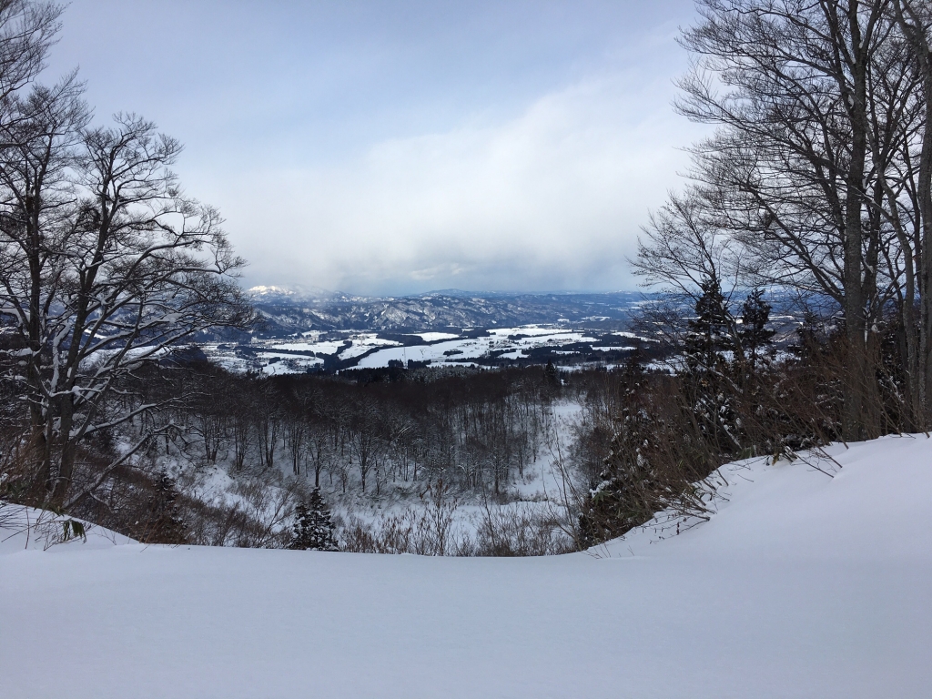 午前の研修が終わり、現在昼ご飯中です。牛丼、カレー、うどんから選んで食べています。中には全部食べる強者も!みんなの笑顔が印象的です。インストラクターの方によると、シーズン中でも三日あるかないか、の良い天気だそうです!今年の一年生は運が良いです!