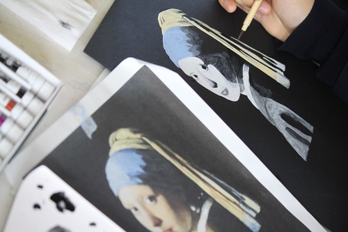 普通科美術選択では2学期、多色木版を制作しました。テーマは漢詩です。
